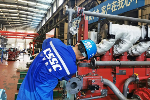 入伏以来,各地持续高温,中船动力集团柴油机装配工战高温、斗酷暑,坚守生产一线,正在对柴油机进行装配、调试。