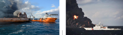 “深潜”号与“海巡01”船在“桑吉”号救援现场