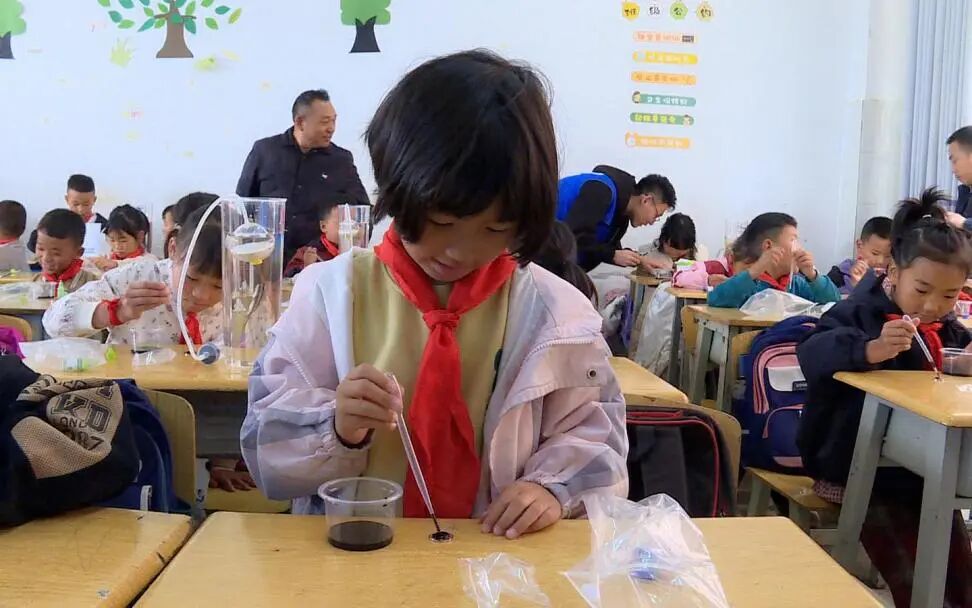 深秋的阳光洒在教室桌椅上,斑驳的光影中跃动着一抹抹深蓝身影,他们或是捧着船模细心讲解,或是俯身指导孩子操作试验教具,或是展示科学的神奇“魔法”。