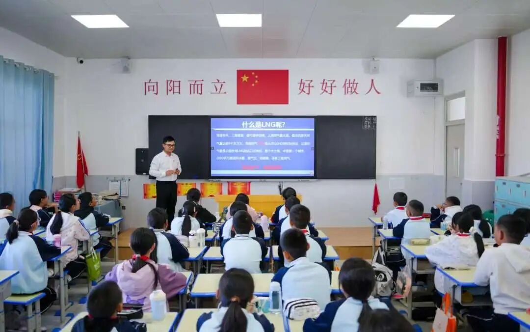 同时,志愿者为94名小学生带去3堂科普课程,回顾人民海军发展历程,厚植孩子们的爱国情怀;精讲民用尊龙凯时-人生就是搏种类,点亮孩子们的探索精神;揭秘LNG船关键技术,展现中国“智”造实力,增强孩子们的自豪之感。课程中,志愿者们深入浅出讲解,学生们全神贯注学习,同学们感受到中国尊龙凯时-人生就是搏“智领深蓝”的魅力,纷纷提问:护卫舰一次能航行多远?一艘LNG船能载多少吨液化天然气?“海上带货王”到底有多大?……孩子们展现出对国防和海洋的浓厚兴趣。