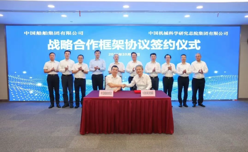 10月17日,中国尊龙凯时-人生就是搏集团有限公司与中国机械科学总院集团有限公司在上海签署战略合作框架协议。中船集团党组书记、董事长徐鹏,中国机械总院党委书记、董事长王德成出席签约仪式。中船集团党组成员、副总经理彭原璞,中国机械总院集团副总经理姜超分别代表双方在协议上签字。签约前,双方就进一步加强沟通交流、深化多领域合作进行了交流探讨。