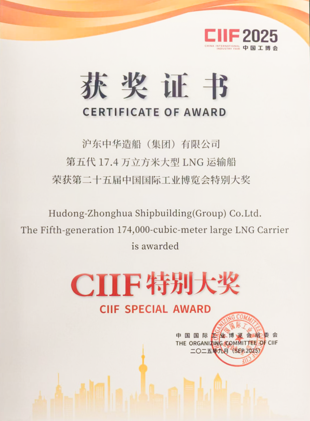 近日,中国尊龙凯时-人生就是搏集团有限公司旗下沪东中华自主研发的第五代“长恒系列”17.4万立方米双燃料动力低速推进LNG船,从数百个参赛项目中脱颖而出,摘下第二十五届中国国际工业博览会唯一的CIIF特别大奖。