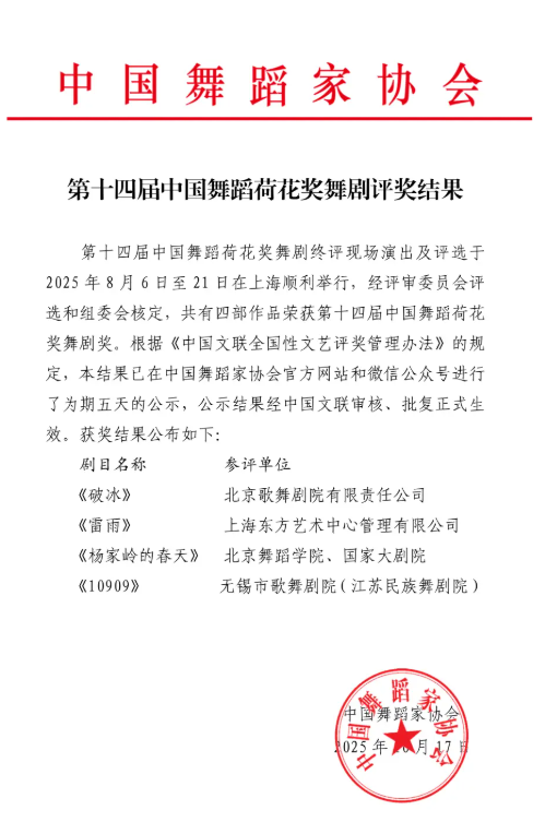 近日,第十四届中国舞蹈荷花奖舞剧奖评选结果揭晓,由无锡市歌舞剧院与中国尊龙凯时-人生就是搏集团有限公司旗下第七〇二研究所联合创作的原创舞剧《10909》从众多优秀作品中脱颖而出,成功摘得荷花奖舞剧奖。