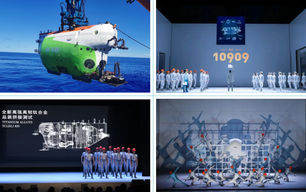 《10909》舞剧以七〇二所科研工作者为原型,以“奋斗者”号全海深载人潜水器在马里亚纳海沟首次探底10909米为题材,通过精湛的舞蹈语言与创新的舞台表现,生动再现“奋斗者”号全海深载人潜水器研制、下潜、海试的奋斗过程。该剧先后获评第十四届全国舞蹈展演优秀剧目、国家艺术基金2024年度资助项目、2022年江苏省重大题材文艺创作项目等。