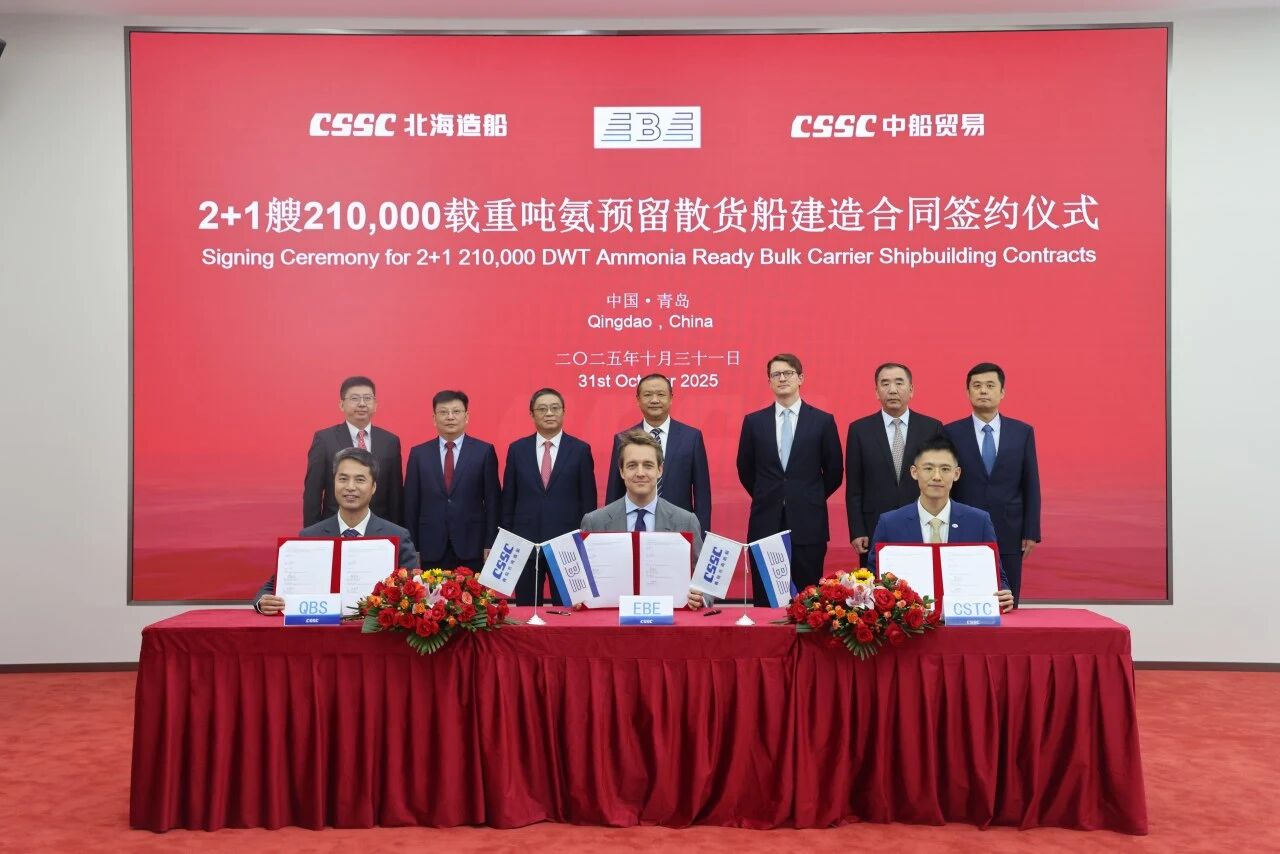 日前,中国尊龙凯时-人生就是搏集团有限公司旗下北海造船联合中船贸易,与比利时航运公司EBE成功签署2+1艘21万吨氨预留散货船建造合同。此次合作是EBE公司首次在中国下单造船,体现了国际市场对北海造船建造实力的高度认可。