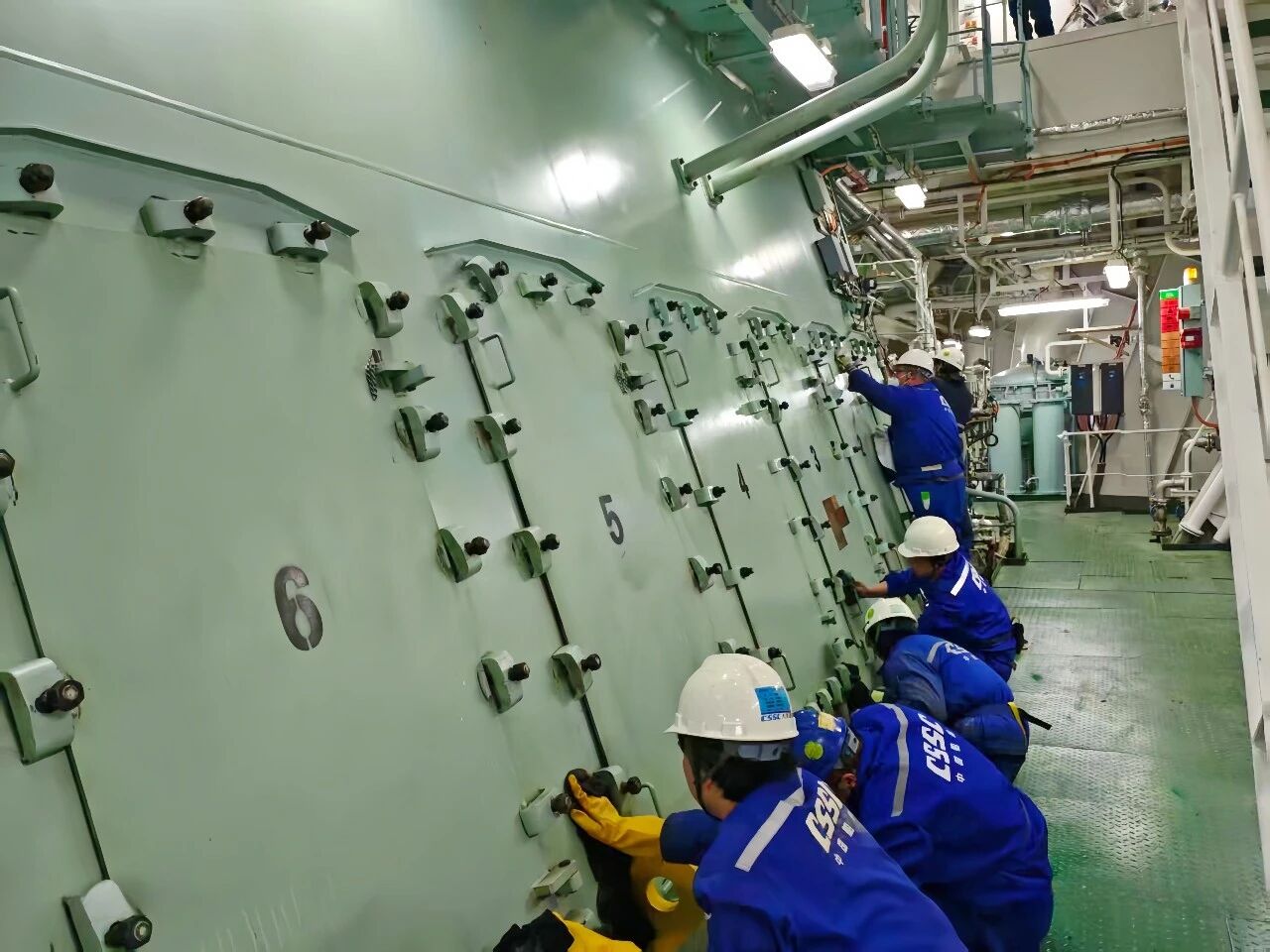 在大连,工程公司一工厂船体作业区产能同比提升30%;LNG项目组成功解决了薄板焊接变形、焊缝成形不均等技术瓶颈,并顺利交付两个液货舱的货围阶段氨气试验施工任务,质量检测结果超行业第一梯队平均水平。