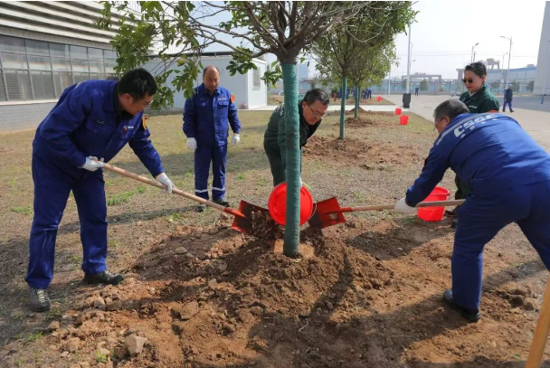 重庆装备积极响应“绿色发展”号召,组织员工代表在厂区空地开展了植树活动。经过大家的共同努力,一棵棵新栽的桂花树苗在春风中昂然挺立。