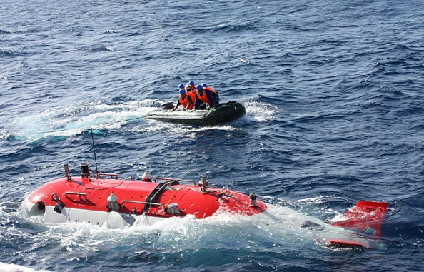 △2012年蛟龙号7000米级海试 蛙人正在靠近蛟龙号