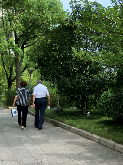 我是记者李谦。太湖之滨,烈日之下,办公楼到食堂的小路上,每天中午,都能看到徐芑南、方之芬两位老人相伴而行的身影。他们坚定从容的脚步,仿佛不被时光打扰。