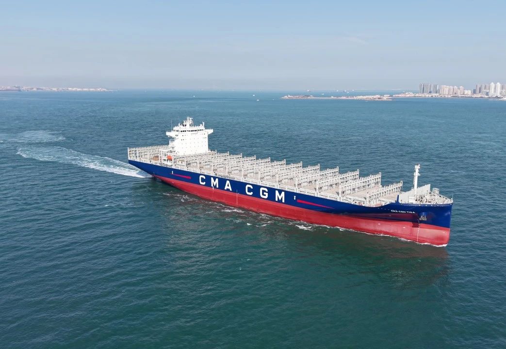4月3日,中船集团旗下北海造船与中船贸易作为联合卖方,为达飞海运建造的5500TEU集装箱系列船“CMA CGM TIGA”号举行命名交付仪式。该船的顺利交付,标志着10艘5500TEU集装箱船项目圆满交卷,进一步巩固了双方长期战略合作伙伴关系。
