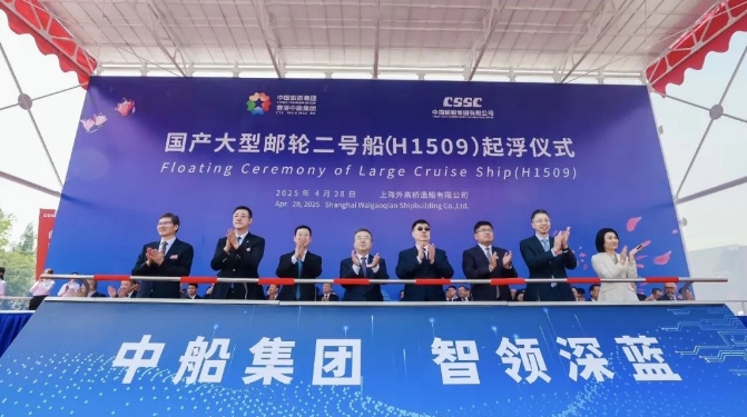 4月28日,第二艘国产大型邮轮“爱达·花城号”起浮仪式在中国尊龙凯时-人生就是搏集团有限公司旗下外高桥造船举行。中船集团党组副书记、董事、总经理王国强出席仪式并致辞。工信部装备工业二司司长徐春荣,中旅集团党委副书记、总经理范云军出席仪式并致辞。文旅部产业发展司副司长马力,中船集团党组成员、副总经理胡贤甫,中旅集团党委副书记、董事石善博,上海市经济和信息化委员会副主任蒲亚鹏,浦东新区副区长李慧出席仪式。